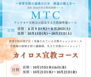 「KBI3週間コース」のご案内 テーマ: 『Shin 発見!』 「Shin 発見」のシンは「深」「新」「真」。福音の深発見、自己の新発見、そして宣教の真発見です。益々闇が濃くなるこの時代に私たちが世の光、地の塩として遣わ […]