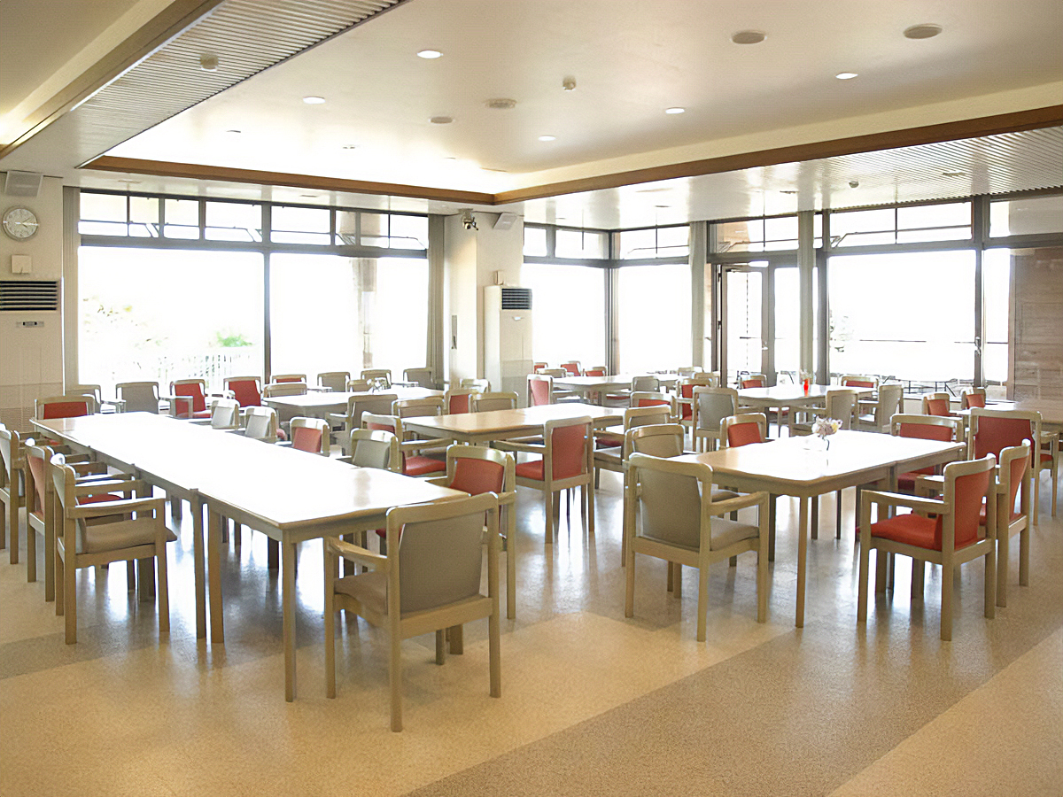 玄関ロビーを右に進むと、そこは明るい食堂スペース。