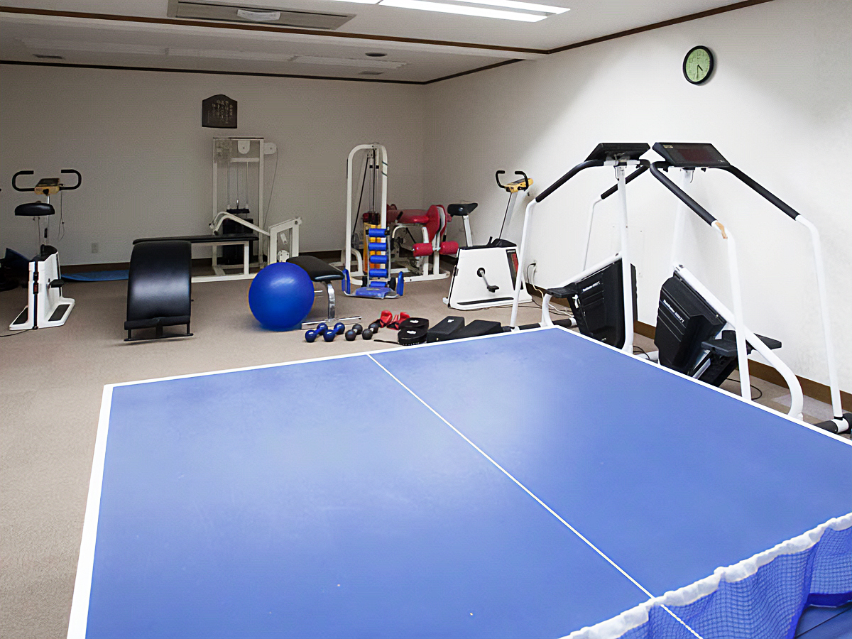 宿泊棟の地下には卓球台をはじめ各種のトレーニングマシーンが