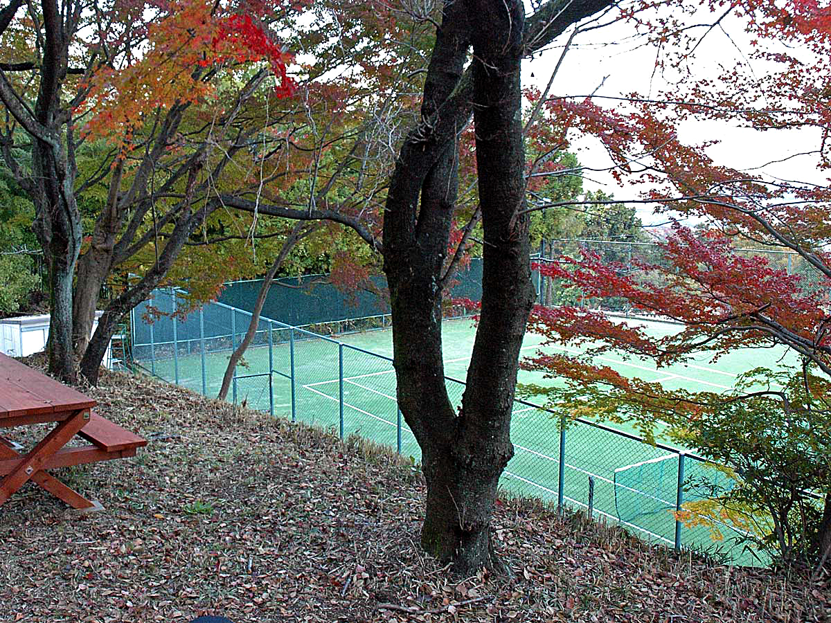 中庭を降りた駐車場に並んでテニスコートがあります。