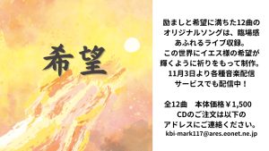 <生駒移転20周年記念 オリジナル賛美CD> 励ましと希望に満ちた12曲のオリジナルソングは、臨場感あふれるライブ収録。 この世界にイエス様の希望が輝くように祈りをもって制作。 11月3日より各種音楽配信サービスでも配信中! 楽譜のダウンロードは、→こちらから♪